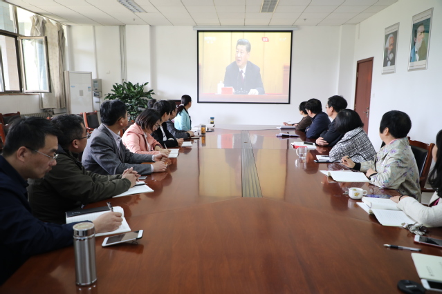 纪念五四运动100周年大会4月30日上午10时30分在人民大会堂隆重举行。我院党总支组织全体教师,在行政楼206会议室观看了现场直播。