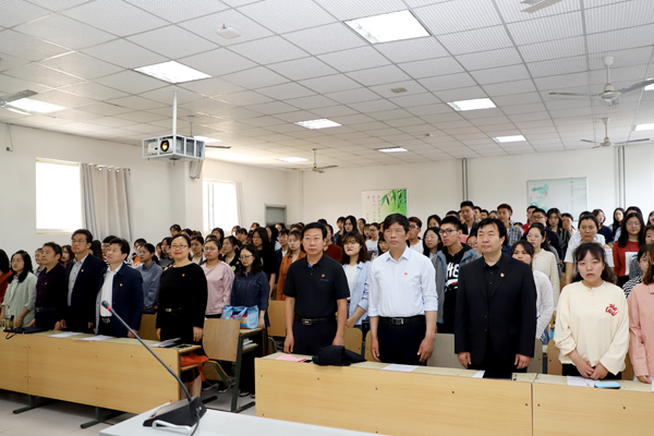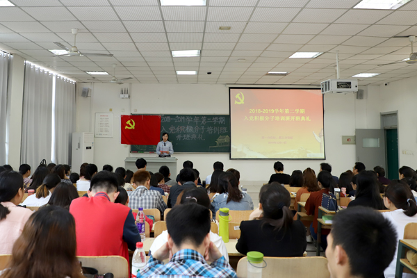 5月11日上午,学校第一、三分校入党积极分子培训班在浮烟山校区B201教室开课,第一分党校校长姜忠华,第三分党校校长程乐森,副校长王培承、朱红伟、刘宪亮,外语系党总支副书记朱宏,心理学系党总支副书记朱红,各党支部书记以及122名入党积极分子参加了开课仪式。