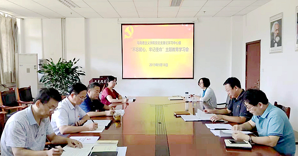 9月18日上午,马克思主义学院党总支在办公楼会议室召开了“不忘初心、牢记使命”主题教育学习会。党总支书记程乐森主持学习,理论学习中心组成员和支部书记参加学习会。