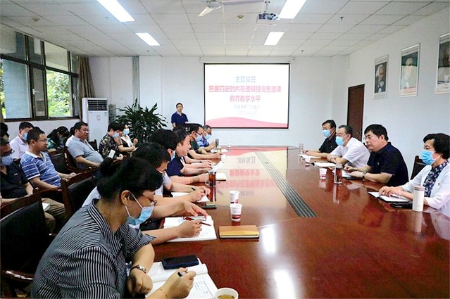 为庆祝中国共产党成立九十九周年,进一步加强爱国主义思想教育,提高党员党性修养和思政课教育教学水平,6月23日上午,思政课第二党支部与宣传统战工会党支部联合开展了学习“四史”主题党日活动,中国化马克思主义教研室张保权博士,为全体党员作了题为“把握四史的内在逻辑,提高思政课教育教学水平”的辅导报告,活动由思政课第二党支部书记宗先顺主持。