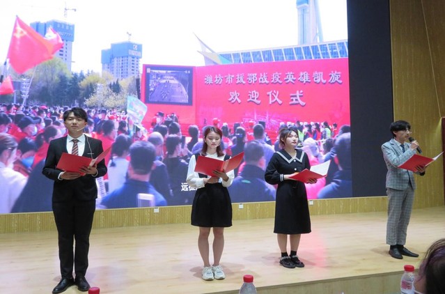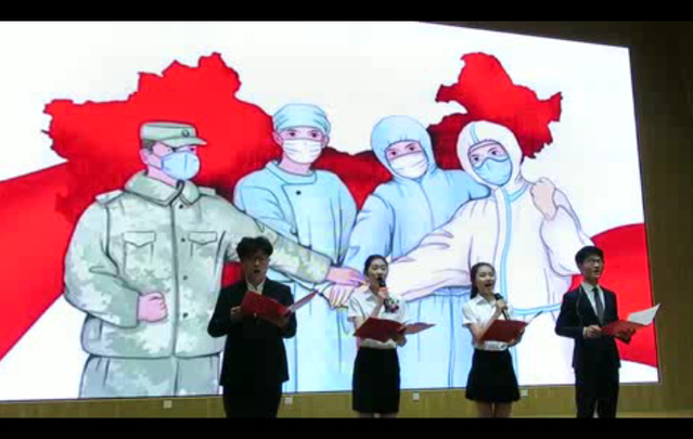 一首《归来》让我们为疫情中医护人员的的无畏与大爱所震憾:“国家的意志,白衣战士的情怀,全社会的支持,所有人对生命的热爱,像三山五岳巍峨,像江河大海澎湃!没有这样的力量整合,就不会有我的胜利归来!”“若我,归不来,也如归来一样,倒下的是躯体,站立的是永爱!”《战疫中的潍医人》深情演绎了潍坊医学院附属医院季宏志医生强忍母亲去世的悲痛,圆满完成援鄂救助任务的故事:“那个晚上,我一个人躲在房间里嚎啕大哭,你知道那种无法排解的痛苦是多么撕心裂肺,多么痛彻心扉!”“可是我决定隐瞒这个消息,第二天一早,我继续奔赴我的战场。”《我看见》让我们看见了疫情的凶猛,看见了中国共产党的初心和使命,看见了不可阻挡的中国力量。《步履不停》展示了我校医学生的使命感:“作为医学生,我更加感受到了这份使命感,秉承‘乐道、济世’的校训,弘扬‘自强不息、锐意进取’的潍医精神,积极参与到疫情防控工作当中。”《幸而有你 山河无恙》我们深深体会:“我不曾知晓你的名字,但我知道你的样子。你的样子,就是中国最美的样子。”“幸而有你们,中国平安;幸而有你们,山河,无恙!”一个个动人的故事,一句句感人肺腑的话语,深深地感染着在场观众。