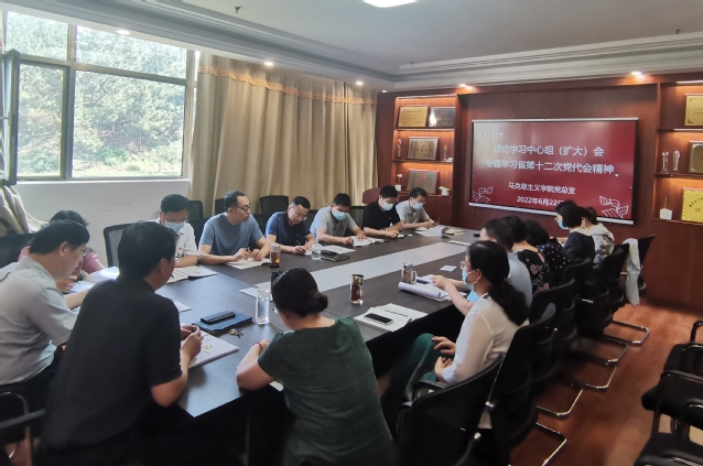 6月22日上午,马克思主义学院党总支理论学习中心组(扩大)召开专题学习会议,深入学习贯彻省第十二次党代会精神。会议由党总支书记程乐森主持,党总支成员、支部书记、支部委员、教研室主任和青年教师代表参加了会议。