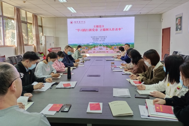 为深入学习贯彻党的二十大精神,进一步提升党员对新党章的理解,增强党员教师的党性觉悟和党性修养,发挥思政课教师在立德树人中的关键作用,11月18日上午,马克思主义学院党总支思政课第一党支部开展“学习践行新党章 立德树人作表率”主题党日活动。