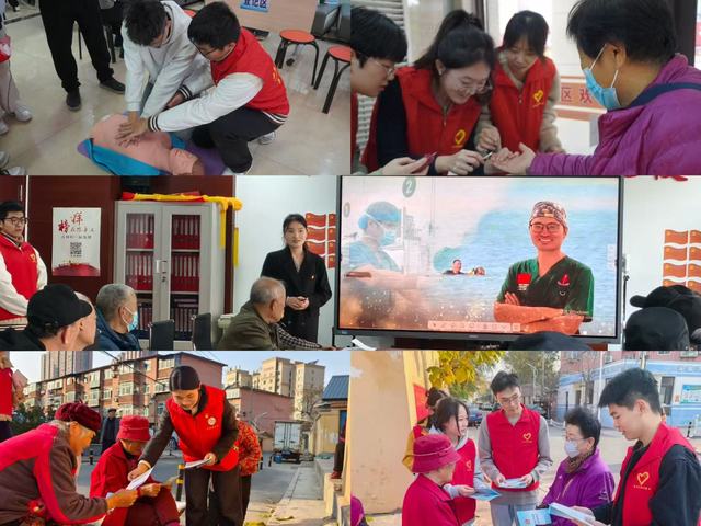 马克思主义学院青年党员教师在现场深情讲述了我校校友、“见义勇为勇士”“最美医生”“全国卫生健康系统先进工作者”张军桥的感人故事,他在街头跪地教心肺复苏的义举和舍身救人的先进事迹深深感染了在场听众,进一步激发了学生党员服务人民健康的初心使命。“超影”志愿服务队的同学们在专业教师指导下,发挥医学影像学科优势,为社区居民提供超声检查、血压测量、健康咨询等服务,并依据初步筛查情况提供专业建议。在社区广场,志愿者们借助模拟人,详细演示心肺复苏的操作流程与技术要点,并手把手指导居民进行实操练习,吸引了众多居民参与。管理学院党员志愿者走进高家东社区,向居民发放普法宣传册,聚焦邻里纠纷、权益保障等民生热点,以通俗语言解读法律要点,让法律知识走进寻常百姓家。外国语学院党员志愿者向周边居民发放健康知识宣传单页,就秋冬季常发传染病预防措施与识别进行普及,提升居民健康意识和健康素养。