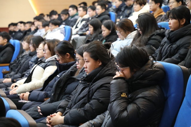 2025年12月13日是中国第十二个南京大屠杀死难者国家公祭日,学校举办“以史为鉴 捍卫和平”南京大屠杀死难者国家公祭日思政大课,引导青年学子深切缅怀南京大屠杀死难同胞,从历史中汲取奋进力量,坚定维护和平信念。思政大课由马克思主义学院和临床医学院联合举办,思政课教师王婷婷主讲,青年学子20余人现场同讲,师生近400人现场聆听。